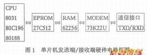 国际电报电话咨询委员会推荐的CRC—ITT生成多项式(G(x))有多种,这里选取约定的生成多项式G(x)=x16+x12+x5+1 来制造CRC校验的参数表。CRC约定的校验规则是:让需要校验的报文代码(M(x))能为G(x)除尽。如果除得尽,表明代码正确;如果除不尽,余数(R(x))将指明出错位所在的位置。在单片机的通信中,一般要在内存中开辟缓冲区存放报文代码,涉及的单片机发送端/接收端硬件电路框图见图1。