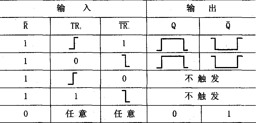 (2)单稳态触发器的特点是具有两个输出状态:稳态和暂稳态。稳态时输出端Q=0。在输入脉冲的触发下,电路翻转为暂稳态,Q=1,经过一定时间后又自动回复到稳态(Q=0)。