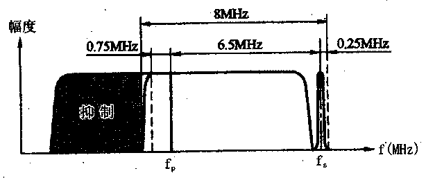 由于视频信号有6M的频带宽度,调幅的结果将会出现上、下两个边带。我国采用的是抑制下边带而又保留下边带0.75MHz以下低频分量的残留边带形式,其频谱如下图所示。