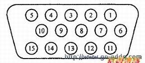 VGA接口(D-Sub15针接口)用于输入计算机输出的R、G、B基色信号及行、场同步信号,其外形见下图所示。