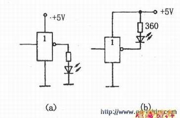 用器驱动发光二管,有两种连接情况,如下图(a)、(b)所示。