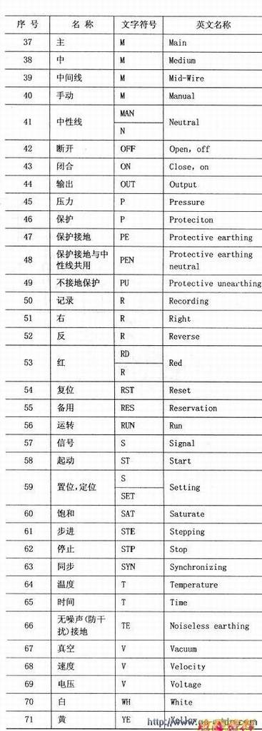 常用电器辅助文字符号