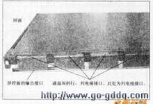 当前,较大一些的液晶屏采用4个灯管已经很常见;高踹的大屏幕的显示器则使用了6灯管、8灯管甚至更多。采用4灯管的液晶屏,其背光灯的位置也因设计而有所不同,一种是液晶屏的上下左右各有一个,一种是4个灯管从上到下横向均匀摆放,更多的则是上面两个、下面两个。还有一种是把两个“U”形灯管开口相对,在上下各放置一个,形成4个灯的效果,但从其工作方式上讲,仍然属于2灯管结构。背光灯的数量与摆放决定着屏幕的最大亮度和亮度的均匀性。P3和p4是液晶屏的信号输入插排,该插排连接着主板电路的信号输出踹,另一端连接液晶屏的屏控板。屏控板在上图的上边和右边的盖板之下。屏控板是一块PCB板,上有多片和其他元件,液晶屏的驱动信号从这个电路板上经其处理后形成分离出的行驱动信号和列驱动信号,再分别送到液晶屏的行、列电极 (即行、列驱动信号输入踹)。行、列电极的实物照片左见图。注意:不要试图拆卸或者修理液晶屏的行列电极的输出和输入接口,包括脾控板在内,在目前对维修人员来讲是无法维修的。