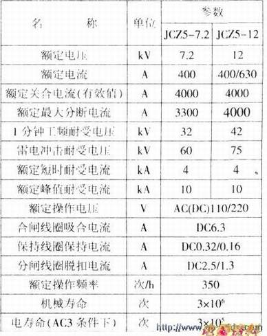 JC25-7.2/12型高压真空接触器主要技术参数见下表。