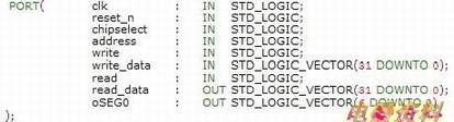 既然加入了两个寄存器和avalon信号,就需要对硬件逻辑进行必要改动,大致过程是,当chipselect和write有效时,将 write_data赋给address对应的寄存器;当chipselect和write有效时,将address对应寄存器的值赋给 read_data。另外,根据这两个寄存器的内容决定数码管输出信号oSEG0。代码不贴出来了,具体见工程压缩包。