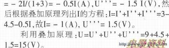 上述分析过程,按独立源的个数进行分解与叠加。但作为一种分析电路的方法,我们也可以把受控源视为独立源来处理,计算过程认为它与独立电源一样具有激励的作用,只是其激励的值是以控制量的形式出现的,在电路中产生的电流与电压也以控制量的形式出现,这样就得到扩展的叠加定理。对于线性电路而言,任何一条支路中的电流或电压都可以看成是由电路中各个电源(包括独立源与受控源)分别作用的,在此支路中所产生的电流或电压的代数和。