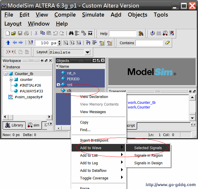 1.使用GUI的方式在ModelSim-Altera作前仿真