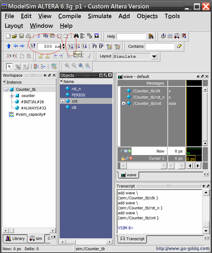 1.使用GUI的方式在ModelSim-Altera作前仿真。