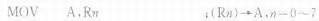 是把Rn中的源操作数送入到累加器A中。由于在指令中指定了从寄存器Rn中取得源操作数,所以称为寄存器寻址方式。