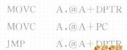 前两条指令适用于读程序存储器中固定的数据。例如,将固定的且按一定顺序排列的表格参数存放在程序存储器中,在程序运行中由A的动态参量来确定读取对应的表格参数。