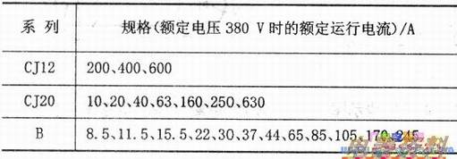 交流接触器的系列规格一般按其主触点的额定电流来划分,不同系列的划分方法基本相同,下面下表给出现行常用的4种产品的规格数据(用于额定电压为380V的线路中),以方便选用。