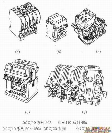 交流接触器被广泛地使用在三相低压电路中,作为开关元件,其常用低压系列的外形如上图所示。下图(a)给出的是一个CJ20典型规格的内部结构图。