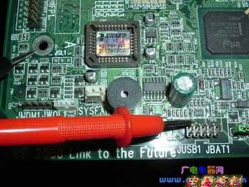 用黑表笔接触主板的地线,如USB接口或键盘接口,固定螺丝位置的边缘,这些位置都是地线。