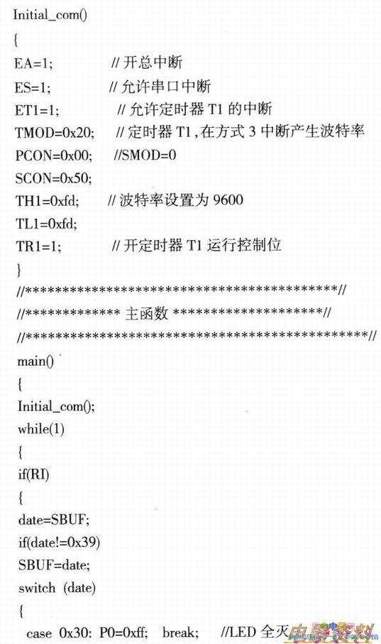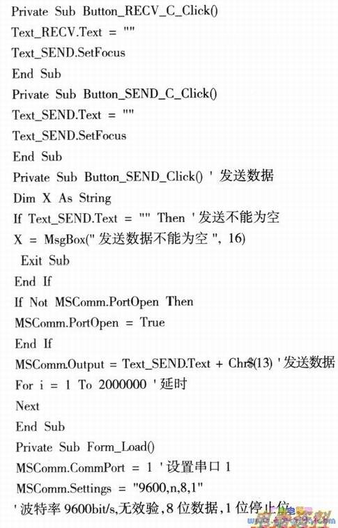 此软件是通过VB6.0编写,主要是对MSComm控件进行操作。将51单片机的控制电路串行接口和电脑连接后,选择正确的波特率,即可进行通信。其主要通信程序如下: