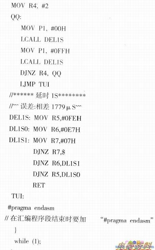 下面举一实例,本程序可达到通过C语言编程中调用汇编,实现的亮灭。