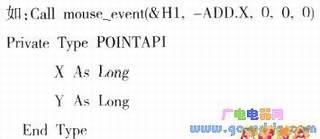 (2)对计算机中光标的移动操作就是对如下数据结构中的X、Y加减操作,鼠标左右移动操作时加减X,上下移动操作时加减Y。如下表示鼠标左移X个点,参数&Hl表示鼠标响应事件为移动光标。