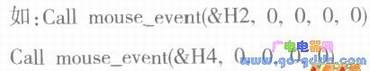 (3)同理对于鼠标的点击(包括单击、双击等)操作只需要修改对应参数即可实现相应操作,如下的两次调用表示左键的按下和松开操作共同构成了鼠标的左单击操作。