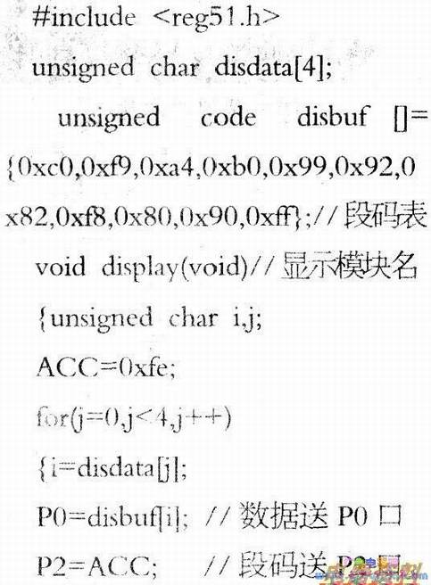动态扫描广泛应用于的显示程序中,它其实可做成一个模块。下面分别给出4位动态扫描显示的汇编程序和C语言程序,从中体会其模块意识。