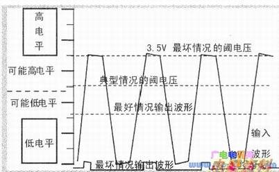 在上图左边的74HCTXX类型电路成功的解决这个问题,将输入阈设置在1.5V,0.8~1.5V为可能低电平范围,1.5~2.OV为可能高电平范围。