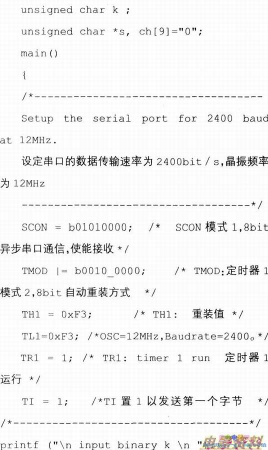 输出二进制数:调用putbin()函数通过串口输出二进制数。