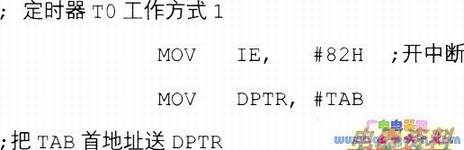 这里我们还要用到查表指令:MOVCA,@A+DPTR它是把表格的首地址存入DPTR,作为基本地址寄存器,把表格的项数(即所查表格元素在表格中的位置)送到累加器A中,两者相加所得的16位数作为程序的地址,取出该地址所对应单元的内容送到累加器A中。