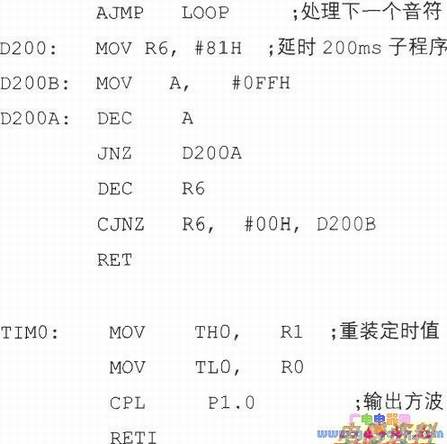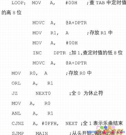 我们用定时器O方式1来产生方波,由P1.0输出驱动扬声器。节拍的控制通过调用200微秒延时子程序的次数来实现。一拍调用两次,半拍就是一次。列出列出音符和定时常数对应表: