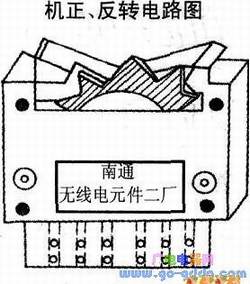 有一种转盘式的开关(见上图)转盘部分有10个齿,每个齿旁边标着“+”或“-”;下边有6个引出焊片分别标着1~6,这种开关看起来很复杂,其实就是一个双刀双掷开关。2和5焊片为刀,其余4个引出焊片为掷(见下图)。当转盘转到“+”时,2与3导通、5与6导通;当转盘转到“-”时,2与1导通、5与4导通。虽然转楹有十个齿,可以转10次,但只有上边说的“+”、“-”两种状态。