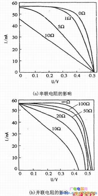 串并联对填充因子有较大影响,如下图所示。串联越大,短路电流下降越多,填充因子也随之减少得越多;并联越小,这部分电流就越大,开路电压就下降得越多,填充因子随之也下降得越多。