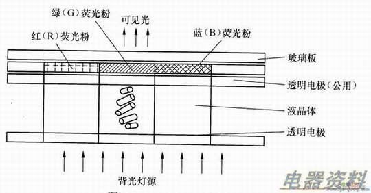 TFT-LCD采用“背透”与“反射”相结合和“有源矩阵”驱动方式,其发光原理如图5所示。