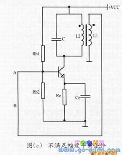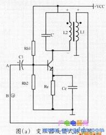在图(a)中,Rb1和Rb2是两个上、下偏置,Re是发射极,只要它们的阻值大小合适,电路就能获得合适的静态工作点。其反馈元件为L1,由它给放大电路提供正反馈电压,可得知,电路满足振幅平衡条件。