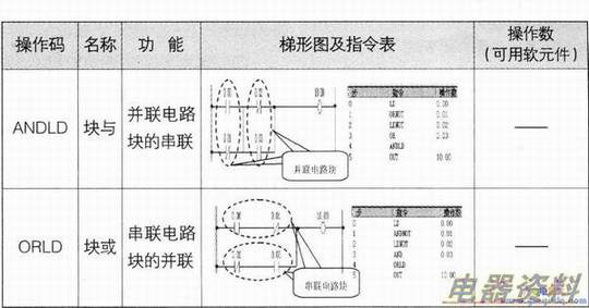 (2)当一个并联电路块和前面的触点或电路块串联时,需要用块与ANDLD指令;当一个串联电路块和前面的触点或电路块并联时,需要用块或ORLD指令。