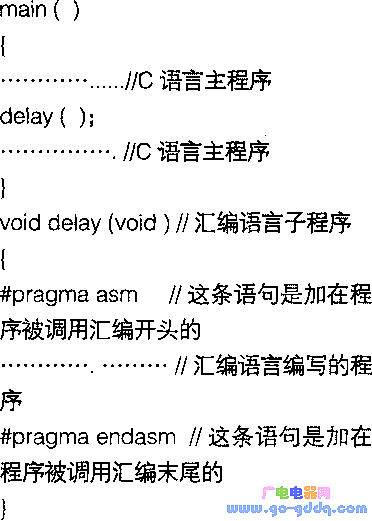 一种是对汇编函数名等定义使用C语言,但是在函数的内部是通过#pragma asm和#pragma endasm关键字来写入汇编程序;另一种方式是将所有的与函数有关的代码都用汇编来实现,这些汇编代码存成单独的文件,以 A51和.ASM为文件后缀名,并将其天添加到项目中,然后在要调用这些汇编程序的C文件中使用exter关键字来定义出函数原型,这样就可以直接对其进行调用了。由于第一种方法比较简单,所以第一种方法也就被广大的设计人员所采用,限于篇幅关系,这里通过一个简单的例子介绍一下第一种调用方法。