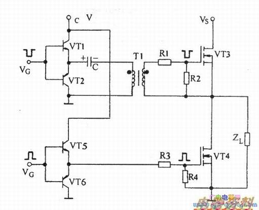 驱动共漏极MOS -FET的另一类电路是,利用耦合,如下图所示。