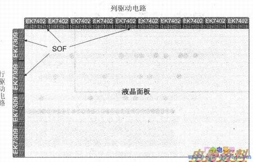 而广义范围的T-CON电路,除了上述的“T-CON电路板”外,还应该包括屏周边的列驱动电路和行驱动电路。液晶屏的电极引线多达数千条,而向屏施加信号的行列驱动电路所在电路板()是在液晶屏生产厂家,使用专业热压设备,采用TAB方式将其直接连接在液晶面板的侧边上,作为液晶面板的一部分而整体出厂的,如下图所示。所以当驱动电路板出现故障时,由于维修设备、电路元件所限,除了一些简单故障外,很多情况下是无法直接进行维修的,只能更换整块液晶屏,或是将屏送到专业液晶面板维修公司。