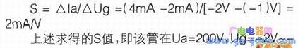 跨导S、内阻Ri和电压大系数μ。为此,首先介绍跨导S的求法,根据跨导的定义,是指板压不变时,栅压Ug对板流Ia的控制能力,写成算式即S=△Ia/△Ug。其意义为板压不变时板流Ia的变量与栅压Ug变量之比。