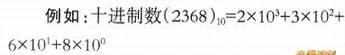 其中各位上的数码与10的幂相乘表示该位数的实际代表值,如2×10的3次方代表2000,3×10的2次方代表300,6×10的l次方代表60,8×10的0次方。