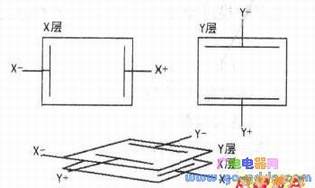 很多模块都采用了式触摸屏,这些触摸屏等效于将物理位置转换为代表X、Y坐标的值的,通常有四线、五线、七线和八线之分,下面分别对该类触摸屏的组成结构、实现原理以及检测触摸的方法进行介绍。