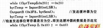 本通讯方式属于零Modem串行异步通讯。在异步通讯中,字符格式和波特率是2个重要指标。本文中通讯过程既有波特率的变化,也有帧格式的变化,对通讯的也有严格要求。在C++Builder可视化编程格式下不再支持直接对寄存器操作的函数,故首先用嵌入汇编的办法实现Inporb和Outporb函数。本通讯的数据流是以字节为发送单位的,故编写字节收发函数,为查询方式,如