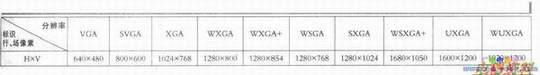 (2)CRT显像管只有最大分辨率之说,不存在标称分辨率的问题,也就是说,只要调整加在电子束上的偏转,就可改变其显示图像的分辨率。而对于液晶屏而言,屏一旦制成,其物理分辨率(常称为屏的标称分辨率)便已固定,不能更改,显示器的常见分辨率标识见下表。若要接收非标称分辨率的信号,就必须采取复杂的图像缩放算法,将其变换为标称分辨率信号,这一处理过程常称为图像缩放处理(Scaler)或格式变换,其对应的电路则称为图像缩放处理电路或格式变换电路。