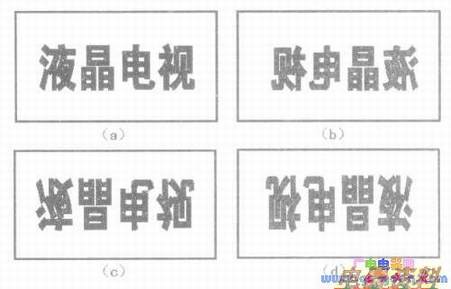 SHARP(LK520D3LZlx)液晶面板的⑤脚(R/L)为水平颠倒模式选择端,⑥脚(U/D)为垂直颠倒模式选择端。当两脚均为低时,为正常模式,如下图(a)所示;当⑤脚为高电平,⑥脚为低电平时,为水平颠倒模式,如下图(b)所示;当⑤脚为低电平,⑥脚为高电平时,为垂直颠倒模式,如下图(c)所示;两脚均为高电平时,为反转模式,如下图(d)所示。