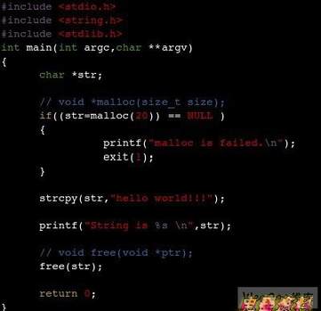 Malloc 返回一块内存地址的指针,否则会返回空指针null,这里要注意的是,当内存不再使用的时候,用free()函数进行对内存的释放。
