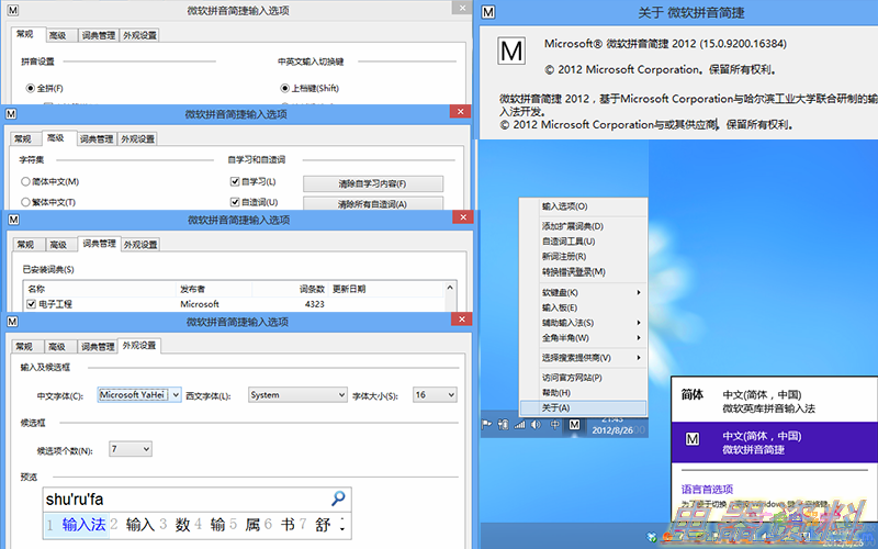 (“微软拼音简捷 2012” 与 “微软拼音 3.0”)