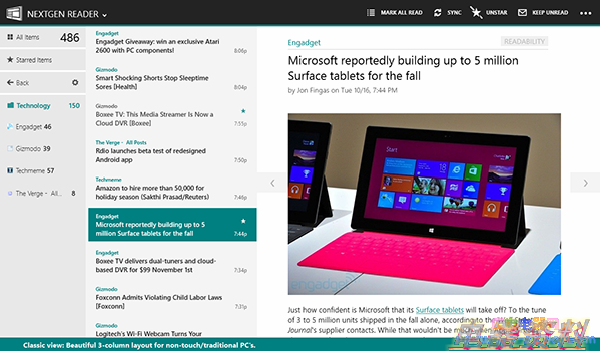 虽然是取巧于官方 Mail 但 Nextgen Reader 仍不失去一款版面设计优秀的应用