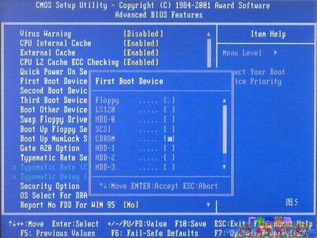 看到那个圈圈住的地方了吗,按回车进入,选择下图所示的然后按光标选择CDROM,按回车确认