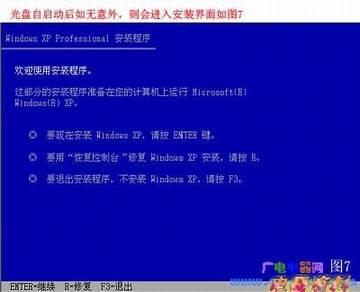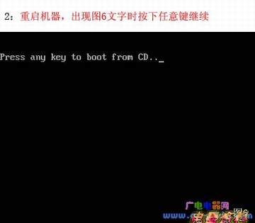 电脑(计算机(电脑))将重启后展示上面的界面,把XP光盘放到光驱中