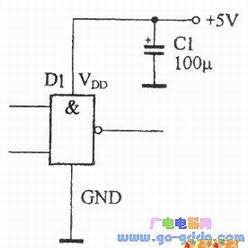 ②电源引脚与地之间一般都接有大容量的电源(见图l中的Cl)。