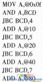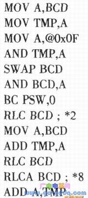 这个范例程序共花费13个指令CY-CLE,需要两个变量空间,执行后会影响到原BCD的内容。