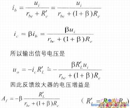如果将这个负反馈放大器的交流等效电路画出来,即如下图所示。注意这时发射极电阻Re必须体现,同时要注意流过rbe的电流是ib,电流源的电流是,流过Re的电流是ie。