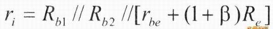 所以输入电阻比未加负反馈时要增大。由于受到Rb1、Rb2的影响,输入电阻的提高并不明显。