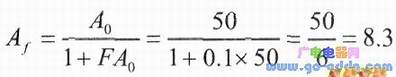 一是与从输出信号中所取出的比例值大小有关。从输出信号中取出;作为反馈信号,和从输出信号中取出1/10作为反馈信号,两者大小当然是不一样的。我们把这一取出量的比例值称为“反馈系数F”,它是这样定义的: